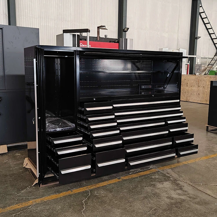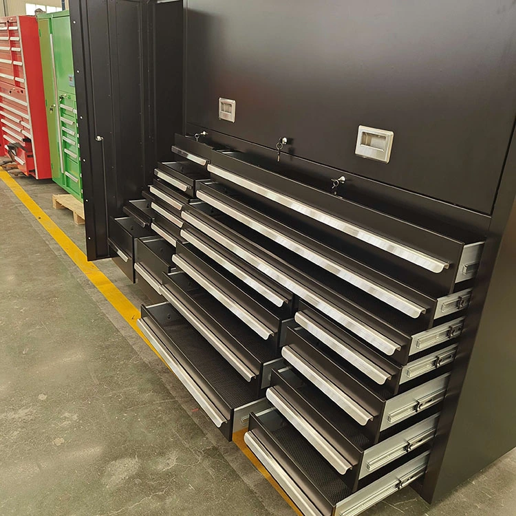 Trả lời: Bề mặt của rương công cụ 20 ngăn kéo được phủ phun để ngăn chặn vết trầy xước và ăn mòn, duy trì vẻ ngoài và độ bền đẹp của nó.