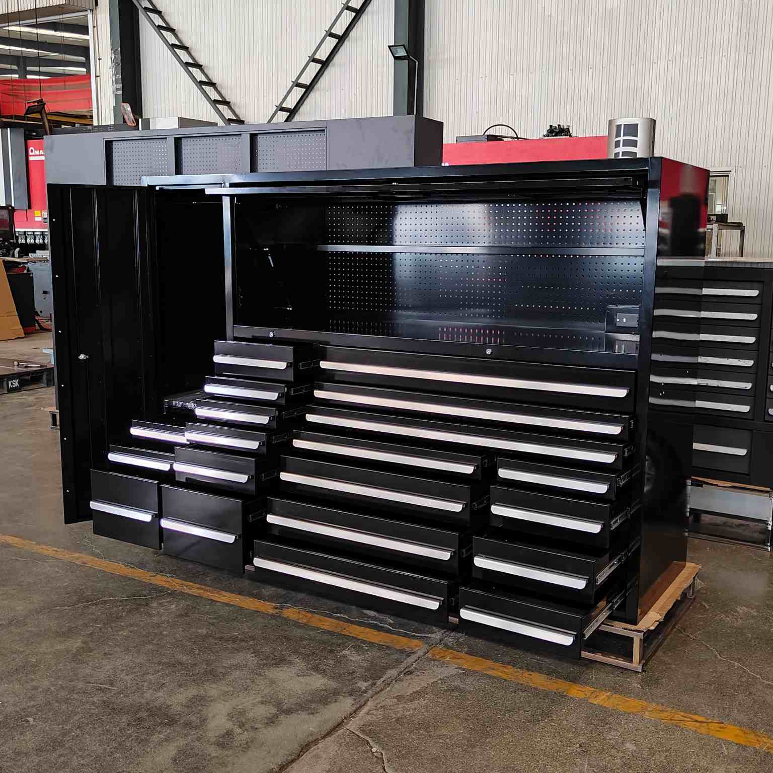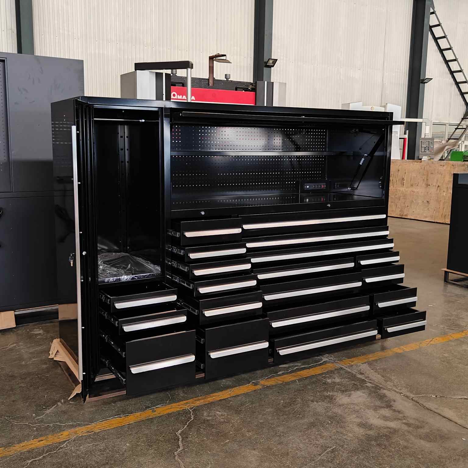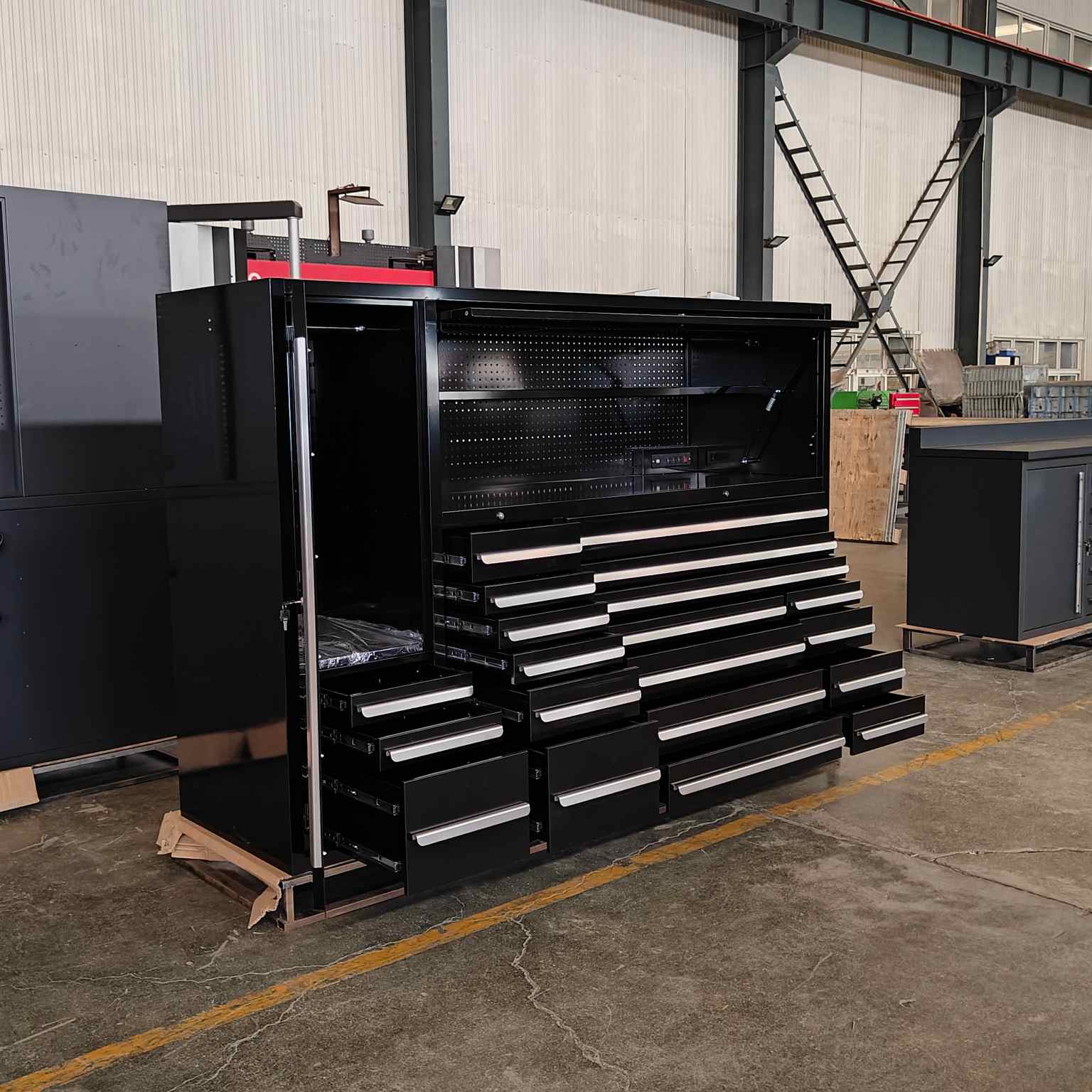 Tủ công cụ đa chức năng màu đen có thể được sử dụng trong các phòng làm việc, nhà của nhà để xe, và các cửa hàng sửa chữa, và được trang bị giá đỡ dụng cụ, ổ cắm điện và ngăn kéo lưu trữ. Tủ công cụ đa chức năng màu đen của Cyjy đã cung cấp sự thuận tiện cho hội thảo nhà máy.