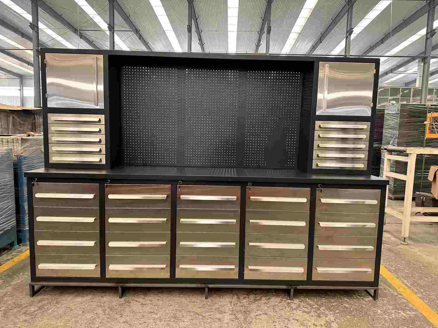 3. Khả năng chịu lực tốt: khung bàn làm việc dụng cụ bằng kim loại chắc chắn và ổn định, ngăn kéo chất lượng cao, khả năng chuyên chở lớn.