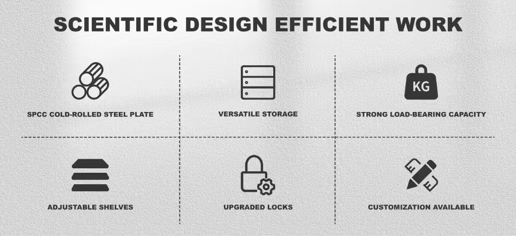 Bàn làm việc công cụ nặng đa chức năng được làm bằng tấm thép cán lạnh với lớp phủ chống vỏ trên bề mặt, có khả năng chống ăn mòn và chống mài mòn, và có thể thích nghi với độ ẩm cao hoặc môi trường công nghiệp. Công cụ nặng đa chức năng cung cấp không gian lưu trữ được phân loại nhiều lớp, hỗ trợ quản lý phân vùng các công cụ, phụ kiện và thiết bị nhỏ và cải thiện hiệu quả làm việc. Bàn làm việc công cụ nặng đa chức năng ngăn kéo ench được trang bị đường ray im lặng mở rộng đầy đủ, hỗ trợ mở và đóng trơn tru khi được tải đầy đủ, cải thiện trải nghiệm vận hành.