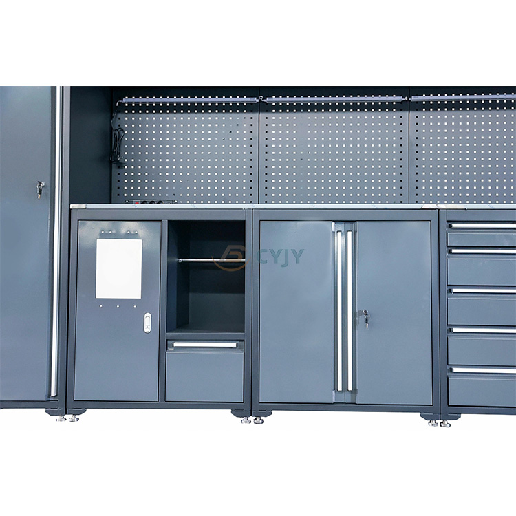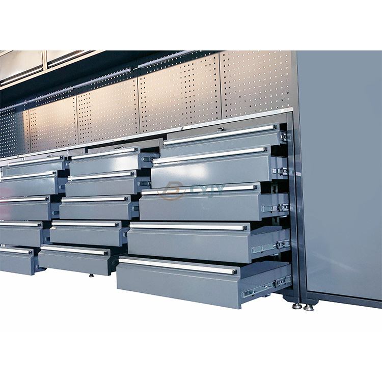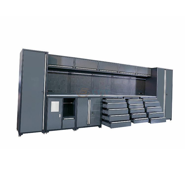 Trước hết, tủ đựng đồ trong gara cao cấp đa chức năng được biết đến với tính linh hoạt. Nó không chỉ có thể lưu trữ các dụng cụ, phụ tùng thay thế, vật tư ô tô và các vật dụng khác mà còn có thể được sử dụng làm bàn làm việc, giá trưng bày, v.v., đáp ứng nhu cầu của chủ xe về các hoạt động sửa chữa, bảo trì, sắp xếp và các hoạt động khác trong gara . Thiết kế đa chức năng này giúp cải thiện đáng kể hiệu quả làm việc của chủ xe trong gara, đồng thời mang lại sự thuận tiện cho việc sử dụng hợp lý không gian gara.