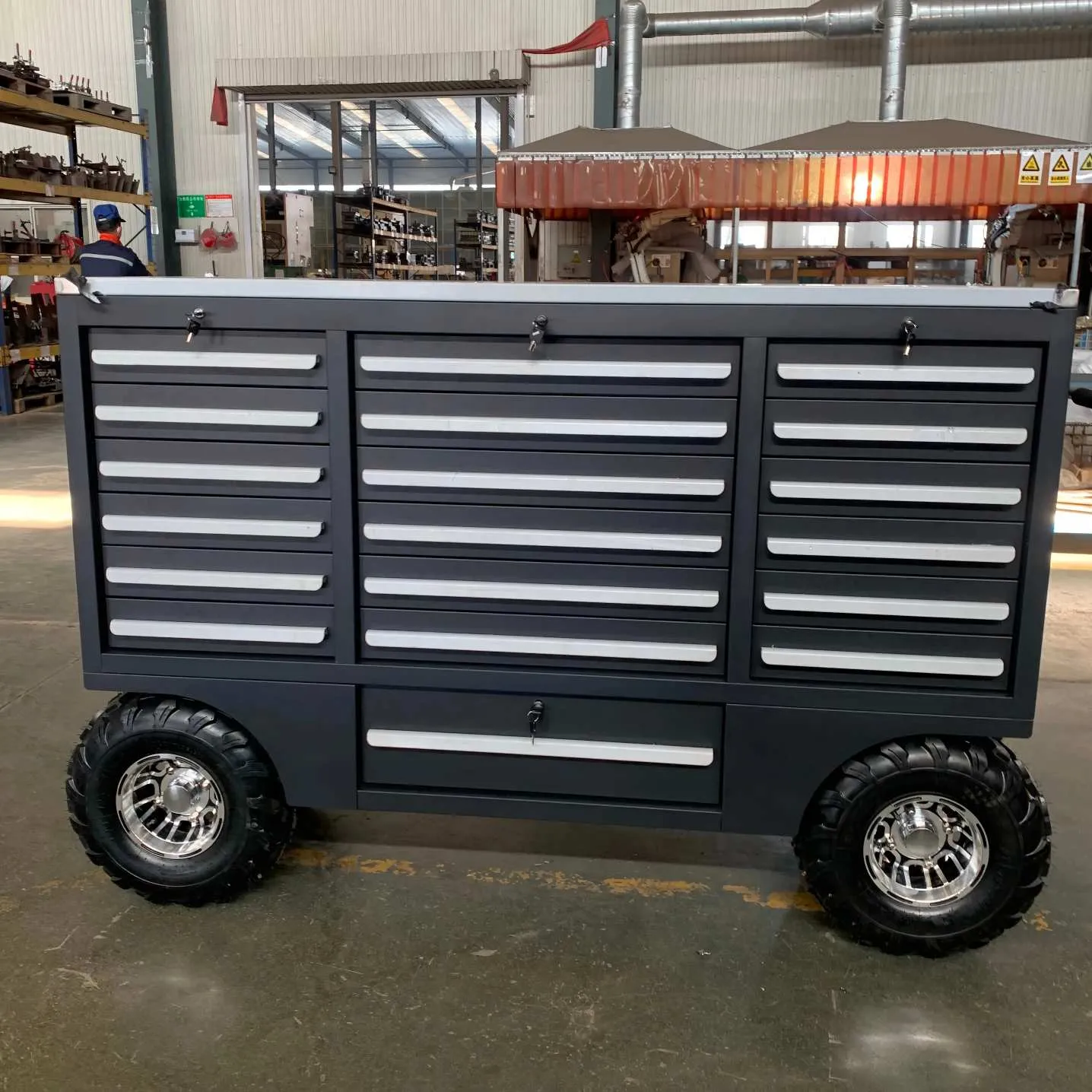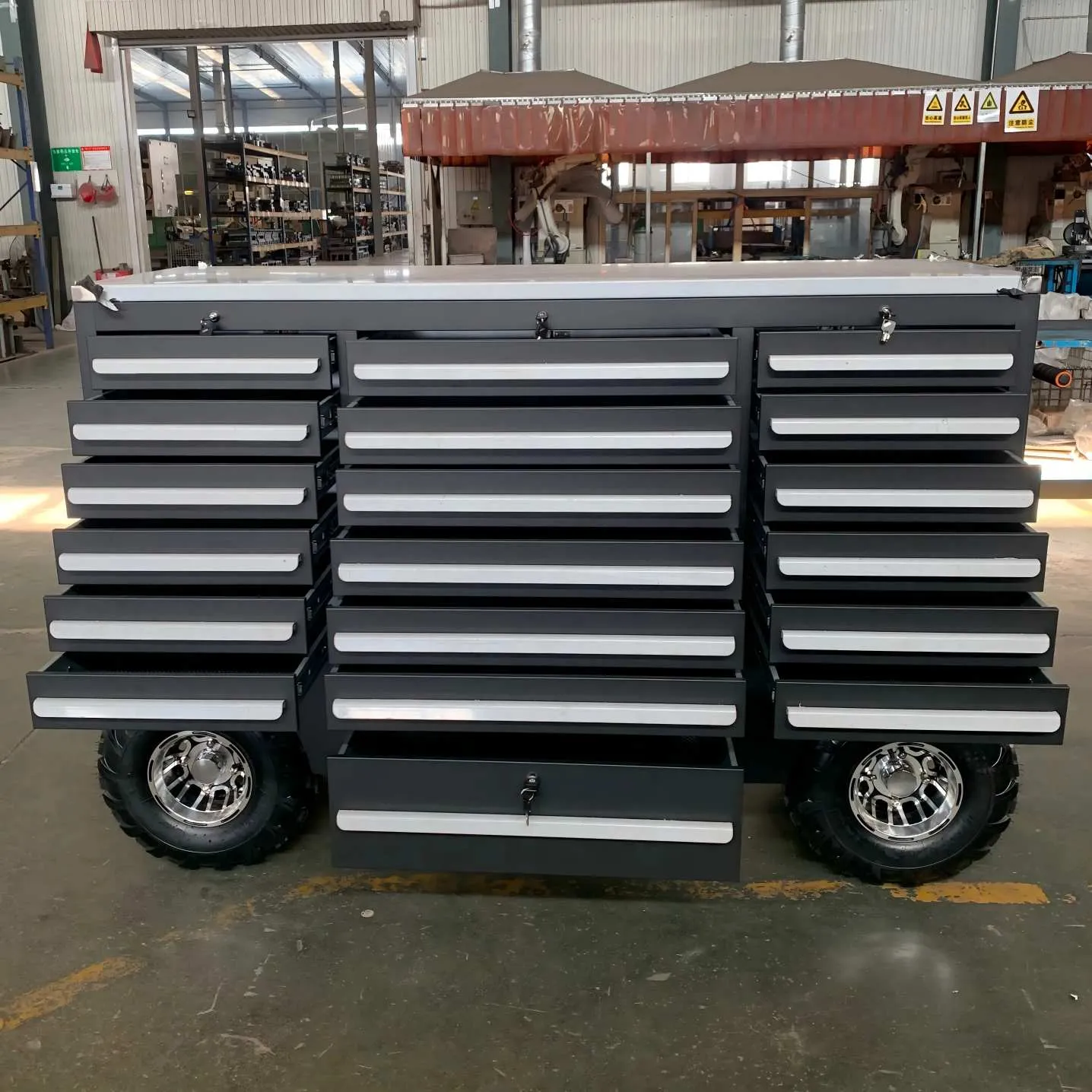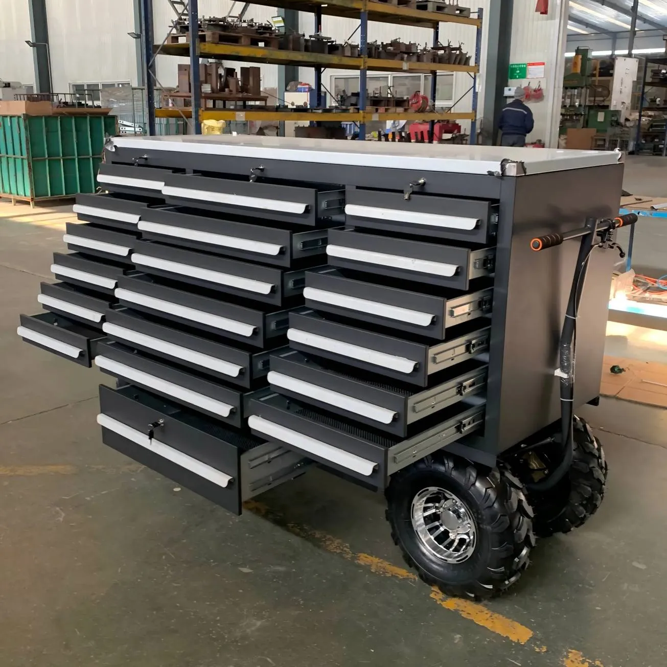 Ở những nơi như cửa hàng sửa chữa ô tô và nhà máy chế biến cơ khí, các kỹ thuật viên bảo trì có thể lưu trữ các công cụ chuyên nghiệp khác nhau trong các ngăn kéo ngực của công cụ nhà để xe OEM trong các danh mục, tạo điều kiện truy cập nhanh trong các hoạt động bảo trì và cải thiện hiệu quả công việc. Tính năng di động thuận tiện cho phép rương công cụ Garage Garage OEM được di chuyển linh hoạt đến khu vực làm việc với kỹ thuật viên trong hội thảo.