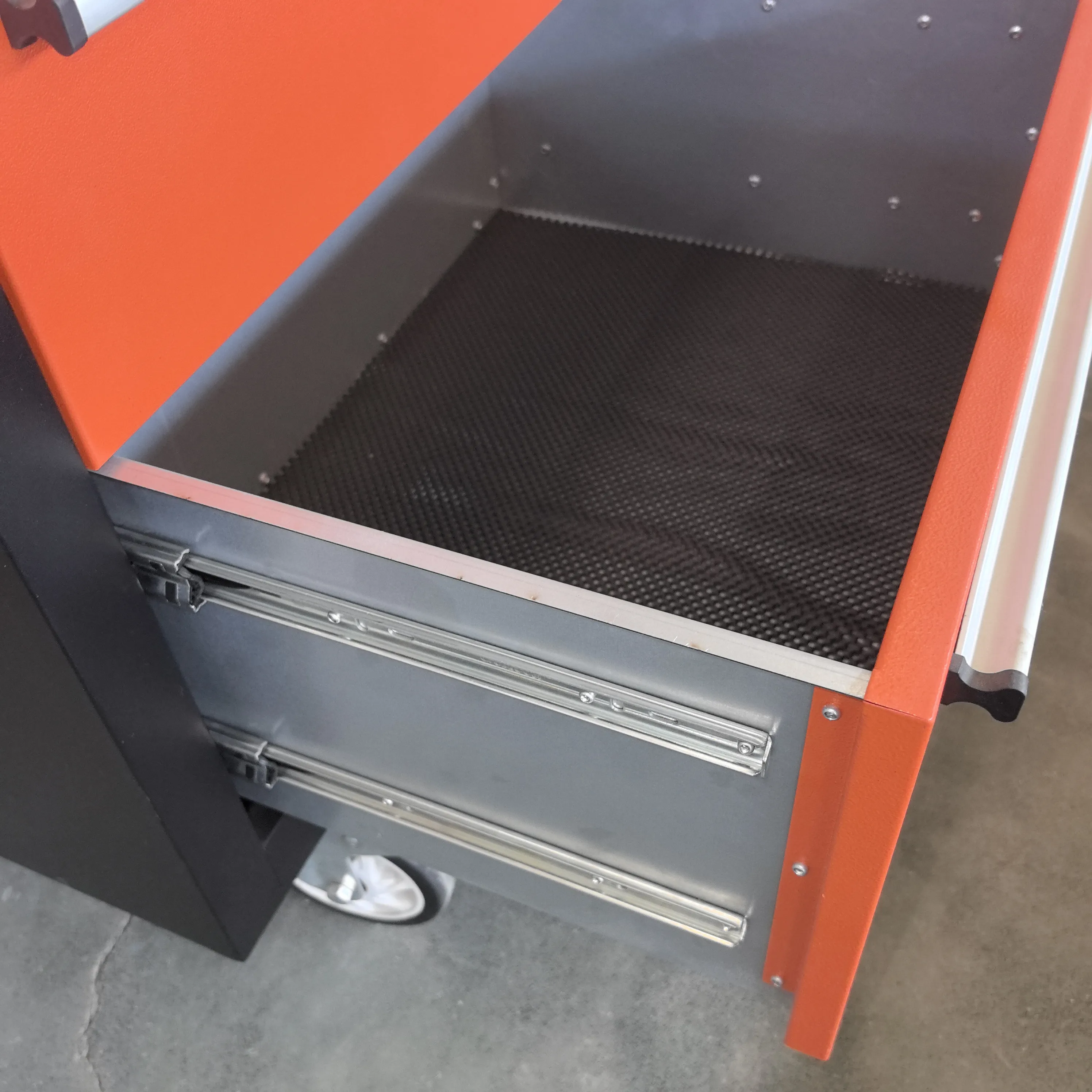 TÔITủ công cụ sửa chữa xe lăn, phải có cho các cửa hàng sửa chữa ô tô. Được xây dựng từ thép cuộn lạnh cứng, nó chống lại sự hao mòn và ăn mòn. Nhiều ngăn kéo, với các kích thước khác nhau, cung cấp không gian rộng rãi để sắp xếp gọn gàng một mảng các công cụ, từ cờ lê đến tua vít. Các bánh xe lăn mượt mà, hai trong số đó có thể khóa được, cho phép chuyển động dễ dàng xung quanh sàn cửa hàng, cho dù bạn đang đi đến thang máy xe hơi hay bàn làm việc. Bản dựng mạnh mẽ của nó có thể xử lý việc sử dụng hạng nặng, đảm bảo độ bền lâu dài trong môi trường nhộn nhịp của môi trường sửa chữa ô tô.
